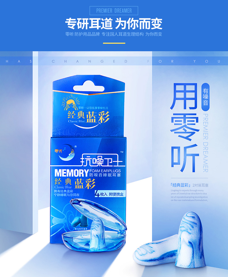零聽抗噪衛士睡眠耳塞藍彩4枚入